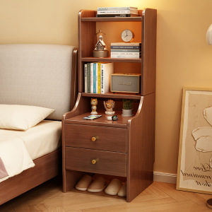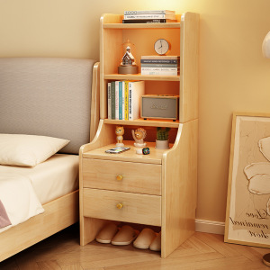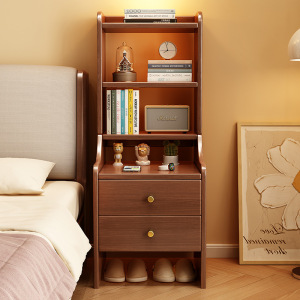 实木床头柜带书架置物架一体简约家用多层储物柜小户型床边收纳架