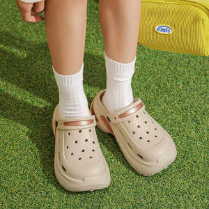 女性用クロックス夏アウターウェア、滑り止め、臭わないフットサンダル、EVA厚底、耐摩耗性、通気性、コントラストカラーのつま先サンダル