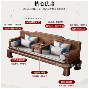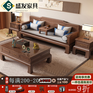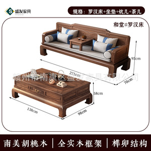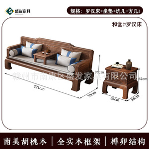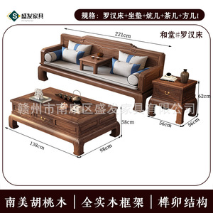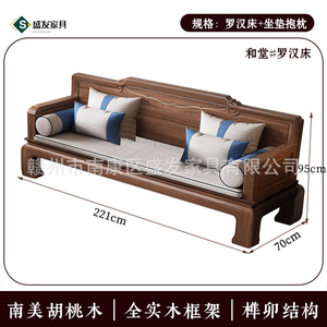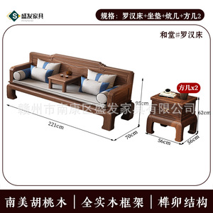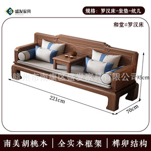 新しい中国風の無垢材羅漢ベッド、南米産ウォールナット模造古典的な彫刻が施された座って横になるリビングルームのコーヒーテーブルソファベッド