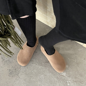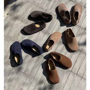 牛皮版!全包勃肯鞋复古磨砂软皮圆头百搭懒人一脚蹬内增高单鞋女