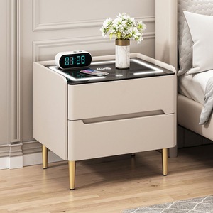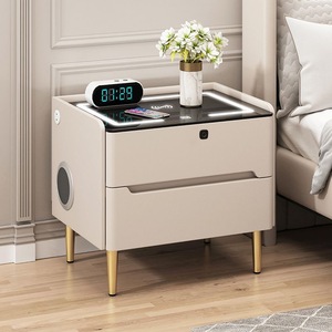 シンプルなスマートベッドサイドテーブル、家庭用寝室用無垢材多機能ベッドサイドキャビネット、新作軽量高級小型収納キャビネット
