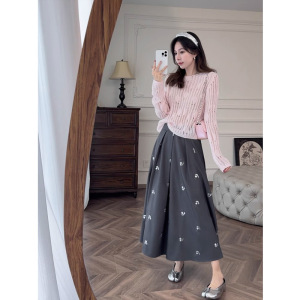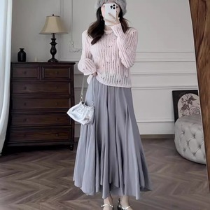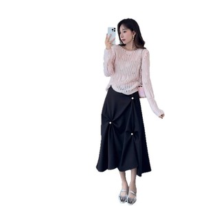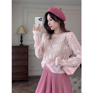 優しい風の柔らかいモチモチのピンクの透かし彫りのニットの女性の2025夏の新型のゆったりしていてやせています。