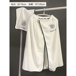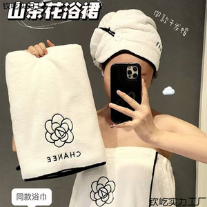 新款ins风山茶花浴巾女家用洗澡浴裙三件套可穿可裹大毛巾干发帽