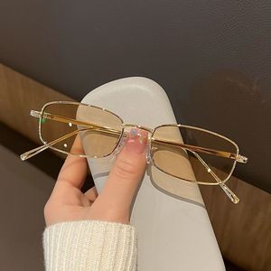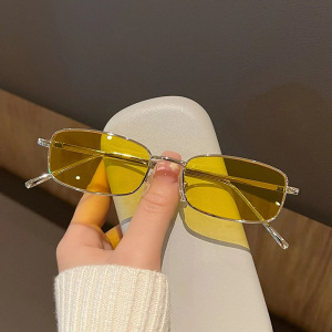 欧米風のレトロな小さい枠の四角形のかっこいい金属のサングラスの男性の小さい顔のファッションは旅行してサングラスの女性の潮を撮影します。