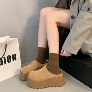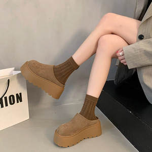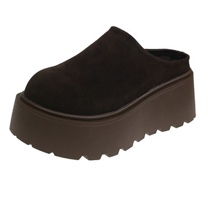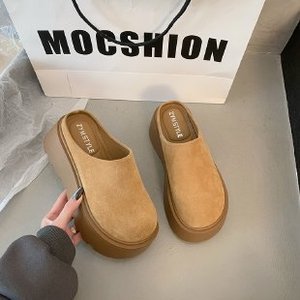超火の厚い底のマンゴーの頭の醜い萌えの布のケンの靴の2025春の新型の爆発の松の餅の厚い底は高くなって包頭の半分を引っ張ります。