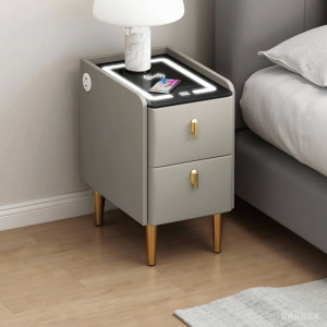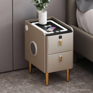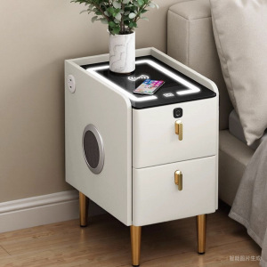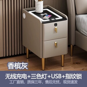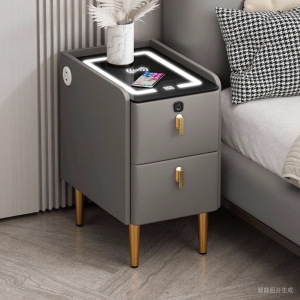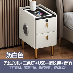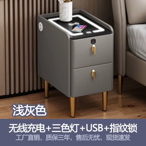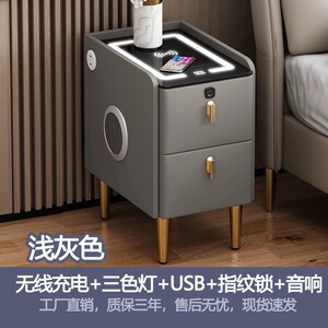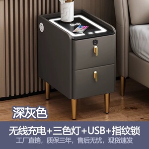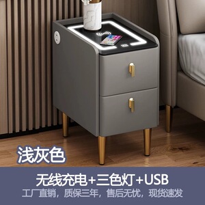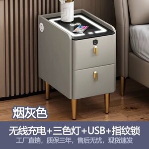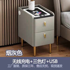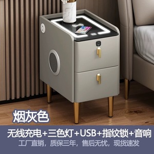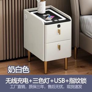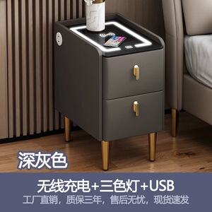 スマート小型一体型ベッドサイドテーブル モダンシンプル無垢材 ワイヤレス充電 軽量高級収納キャビネット 寝室収納