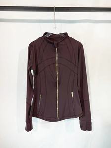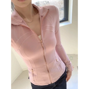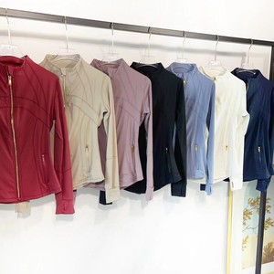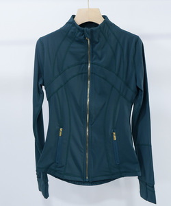 ヨガコート女子タイツ立襟金色ファスナー長袖上着スポーツランニング速乾タイツジャケット