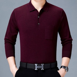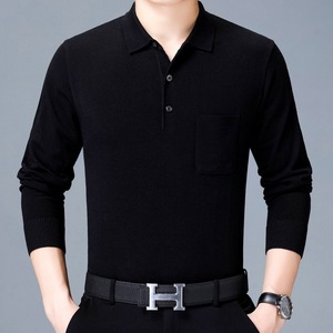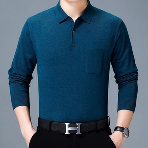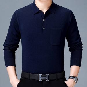 秋の新作中年男性長袖Tシャツニットボトムシャツリアルポケットラペルポロシャツトレンド8820