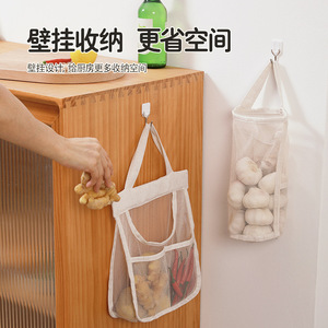 キッチン生姜とニンニク収納袋メッシュ通気性壁掛け多機能収納袋大容量果物と野菜防湿吊り袋