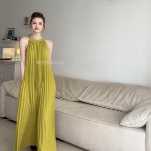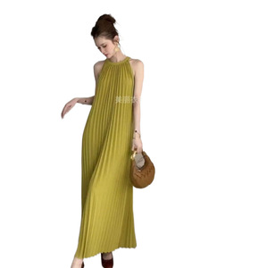 胖MM大码法式绿色无袖挂脖连衣裙女夏季气质海边度假风长裙遮肉潮