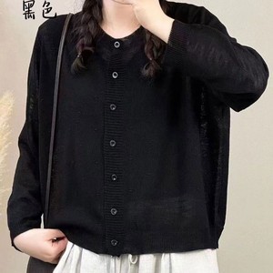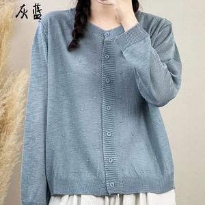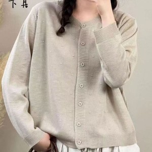2025年韩版圆领纯色简约宽松百搭长袖针织衫文艺休闲开衫外套女装