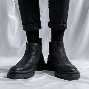 ブロックチェルシーブーツ メンズ 本革 マーティンブーツ ハイカット 革靴 厚底 英国風 レトロ 中華ショートブーツ