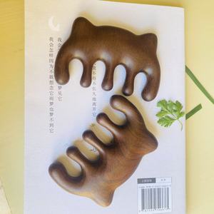 ゴールデンサンダルウッド猫マッサージコームかわいい猫頭経絡コームマッサージャー天然無垢材コームロゴ
