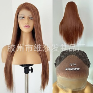 クロスボーダーヨーロッパとアメリカのフロントレースウィッグフルヘッドギアCOSパーティーハンドフック13x4ダークブラウンロングストレートヘア女性工場