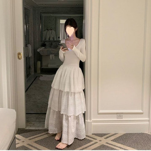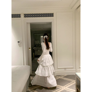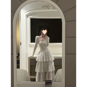 月光少女法式高级气质长袖裙子女秋季新款2025温柔蛋糕长裙连衣裙