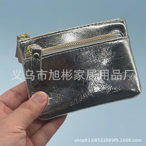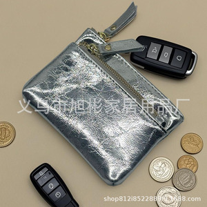 在庫あり、ファッショナブルで多用途なシルバーPUソフトレザー小銭入れ、絶妙でコンパクトでポータブルなコイン収納バッグ、マルチシーン
