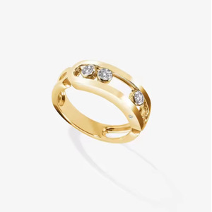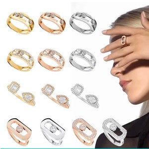 ヨーロッパとアメリカの文字オリジナルバージョン V ゴールドメッシ 3 ダイヤモンドリングスライド可能なブレスレット Meijia 光沢のあるメッキ 18K リング