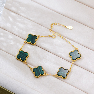 通体s 925純銀金メッキ四葉草の爪に古典的な洗練された底托diyアクセサリーのブレスレットの空托