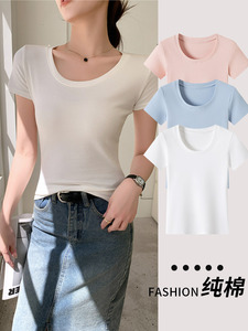 H673 レディース 綿100% Uネック 半袖 夏 薄手 スリムフィット 着痩せ効果あり 着回し抜群 無地トップス Tシャツ ノースリーブインナー