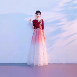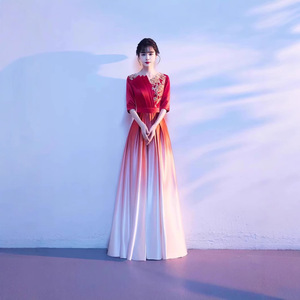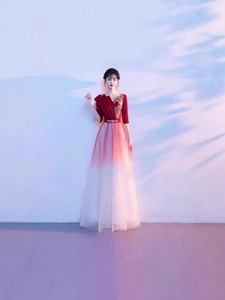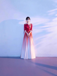 大合唱衣装女性のロングスカート学生詩朗読赤い歌コンテスト年次総会ホストイブニングドレスエレガント