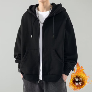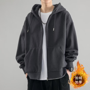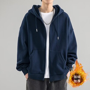 加绒开衫卫衣男春秋季2025新款美式潮牌重磅男生连帽休闲上衣外套