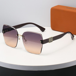新型ファッション高颜値枠なし縁切りサングラス女ins優雅大枠潮サングラス丸顔街拍眼鏡