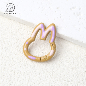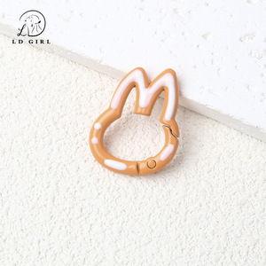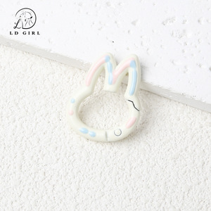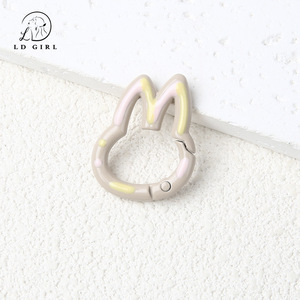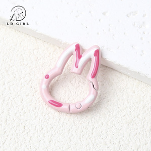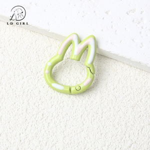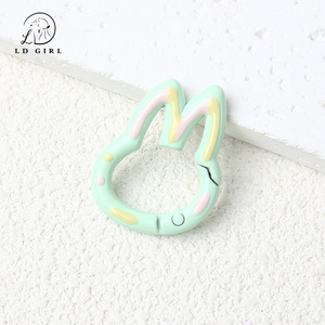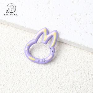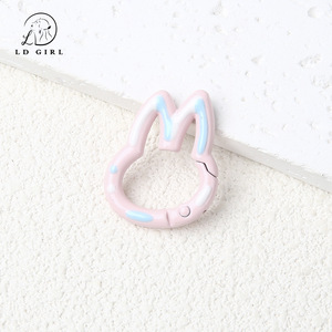カラーペイント手描きウサギの頭のスプリングはdiy合金のアクセサリーのキーホルダーの携帯電話のチェーンを掛けて車を掛けます。