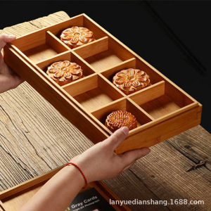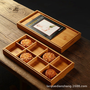 竹と木の中秋月餅ギフトボックス 8 エッグイエロークリスプボックス分割ドライフルーツペストリーボックス木製月餅包装箱