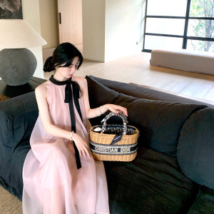 新しいフレンチジェントルスタイルのルーズレースアップドレス、ハイエンドのノースリーブスイート誕生日ビーチバケーションスカート
