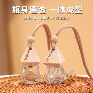 10 ミリリットル車のアロマセラピーガラスボトルミニ木製蓋ストラップディフューザーボトル増粘透明コンパクト香水ボトル
