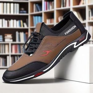 メンズスポーツカジュアルシューズ秋通気性軽量浅口ソフトソールアウトドアスニーカー英国ロートップスリッポン紳士靴