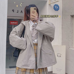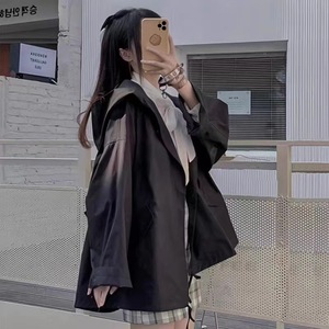连帽风衣黑色外套女新款秋季女防晒宽松显瘦百搭原宿风