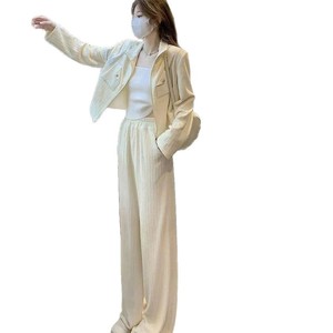 两件套装小香风垂感阔腿裤春秋季新款外套休闲运动套装女时尚显瘦