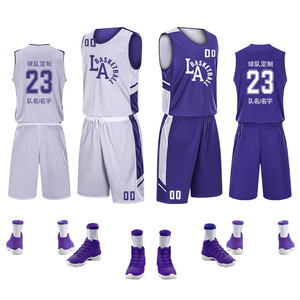 両面バスケットボール服セット男性夏ベストトレーニング試合チーム服ベストコート通気性学生運動印字
