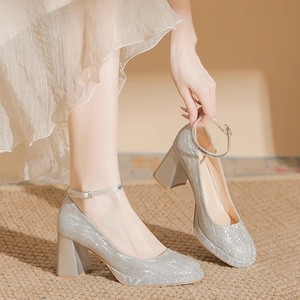 防水厚底ヒール新しいメリージェーンクリスタルシューズワンラインバックルウェディングシューズブライダルシューズ小人スクエアトゥハイヒール女性用