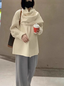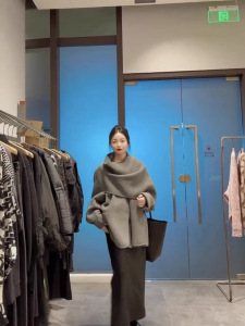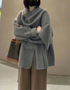 江南家JNBグレーY両面パイルウールマフラーマントコート両面マントコート