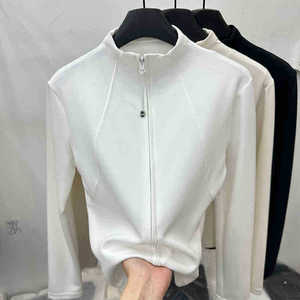 ダブルジッパーカーディガンスタンドカラー長袖Tシャツスウェットシャツデザイン無地万能ボトムシャツレディース春スリムトップ
