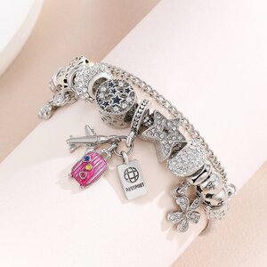 Panjia ブレスレットヨーロッパとアメリカのクロスボーダー DIY ビーズブレスレット飛行機スーツケースパスポートペンダントラインストーン人気のジュエリー