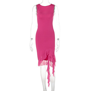 2025年夏新作 欧米風 クロスボーダー ファッション レディース シンプル エレガント ノースリーブ ウエストシェイプ 細見え アメリカンスタイル ワンピース
