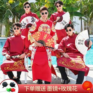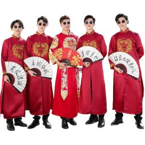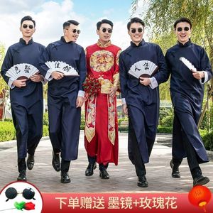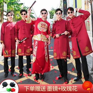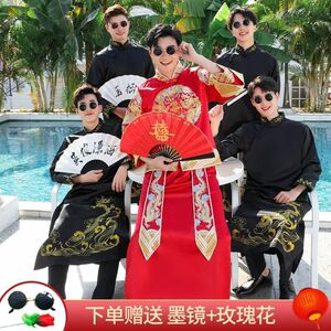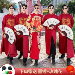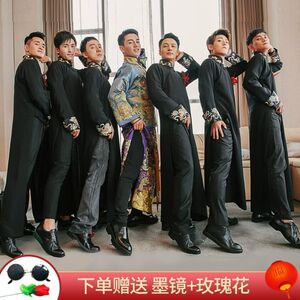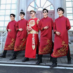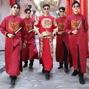花婿の付添人中国風の結婚式のドレス兄弟秋と冬の結婚式のサウンドコメディ衣装中国のローブロングシャツコート唐スーツジャケット