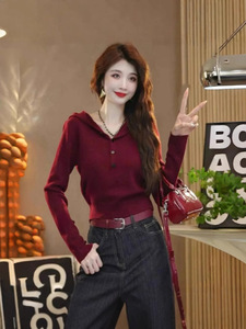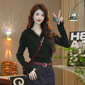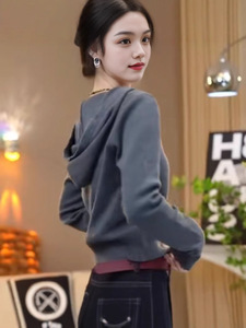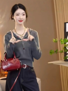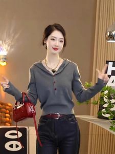 欧货设计感小众简约连帽毛衣女秋季2025新款百搭时尚洋气针织上衣