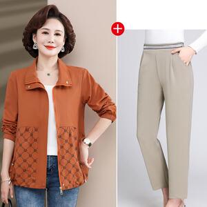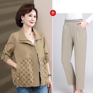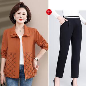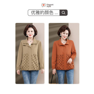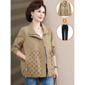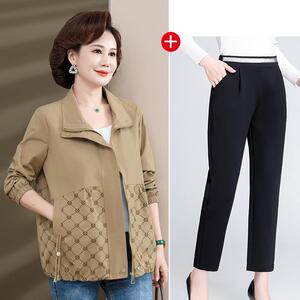 中年妈妈春装外套洋气上衣2025新款套装中老年女装春秋时尚夹克衫