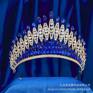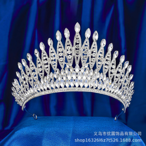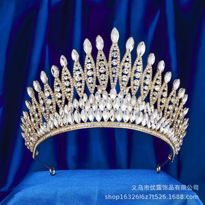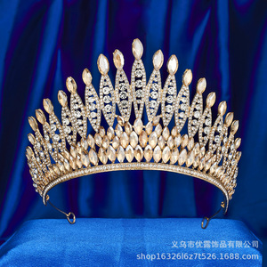 欧米の豪華な水晶の花嫁の王冠の合金はダイヤモンドの美人のお嬢さんの王冠の頭を飾ってウェディングドレスのカチューシャを飾ります。