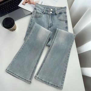 2025年初春の新作女性用ライトブルーマイクロフレアジーンズ、ハイウエスト、多用途、スリム、フレアホースシューパンツ