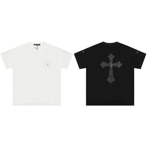 クロスボーダー高バージョン CH クロウレザークロス刺繍半袖 Tシャツ男性と女性のための同じスタイルの Tシャツドロップシッピング