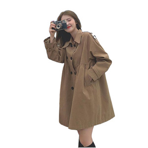 トレンチコートの中の長さの新型のフランス式のダブルボタンの韓国版のゆったりしている小さい子供のカジュアルなコートの早秋の上着の女性