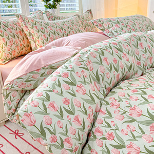 スモールフレッシュコットンベッド4点セット新疆純綿2025新掛け布団カバーシーツとボックスシーツ3点寝具セット