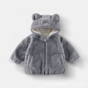 秋冬の子供のぬいぐるみのコート2025の新型の外国貿易の子供服の耳は帽子の純色のファスナーと欧米のジャケットを合わせます。