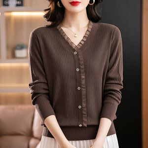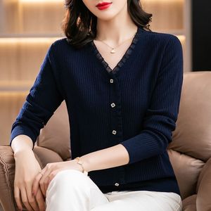 大码女装领女士毛衣花边针织衫秋季新款内搭宽松长袖上衣打底衫