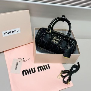 クロスボーダー miu 2025 新しいレディースバッグプリーツボウリングファッションハイエンドポータブルボストンショルダークロスボディバッグ